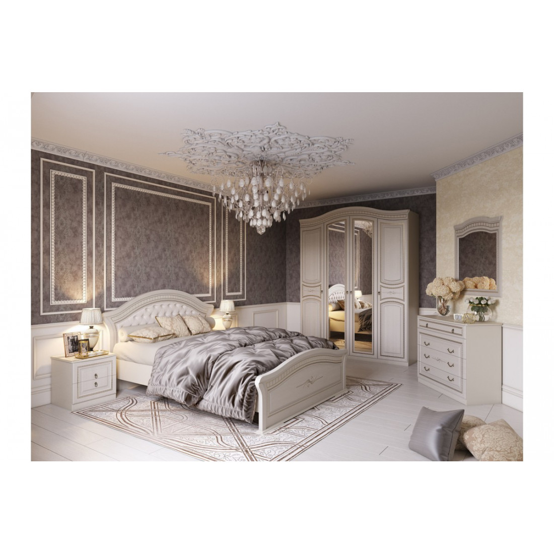 Четырехдверный шкаф для одежды Николь - вместительный шкаф с зеркалом от российской фабрики МебельГрад.