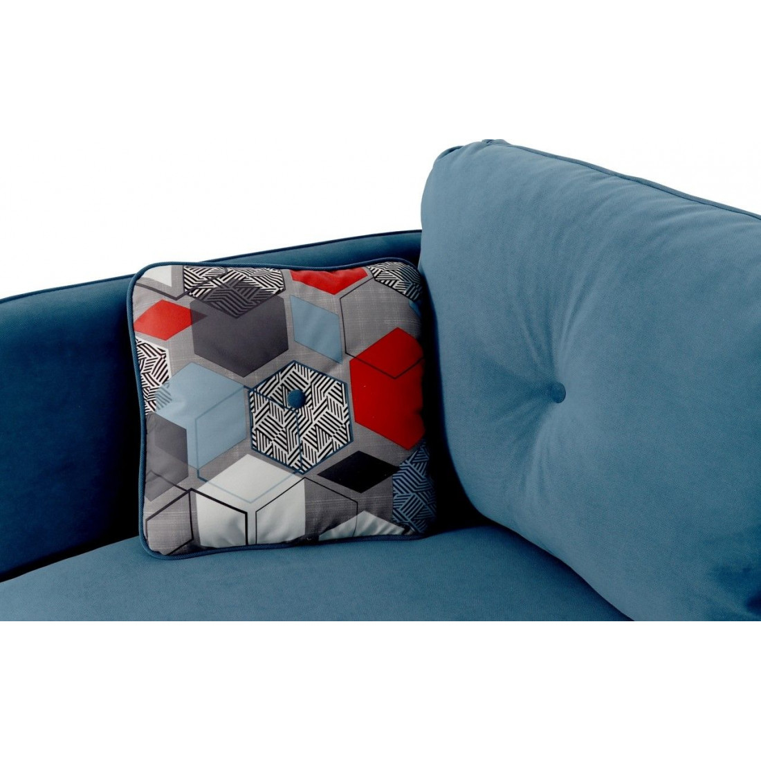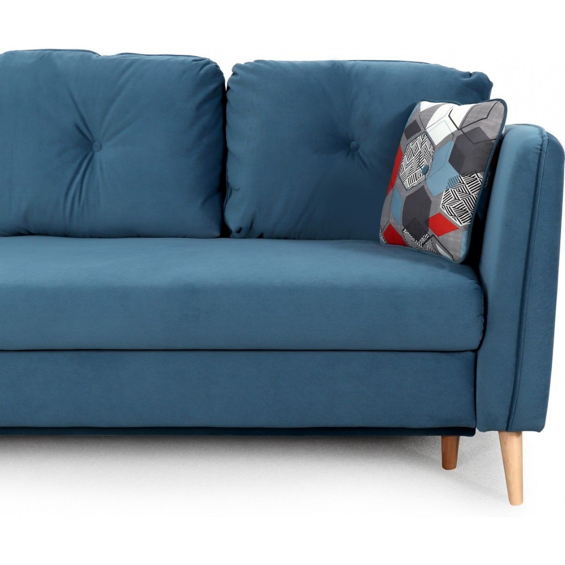 Диван украшают декоративная отстрочка, декоративные утяжки с пуговицами на подушках. Опоры дивана из массива березы подчеркивают стилистику.