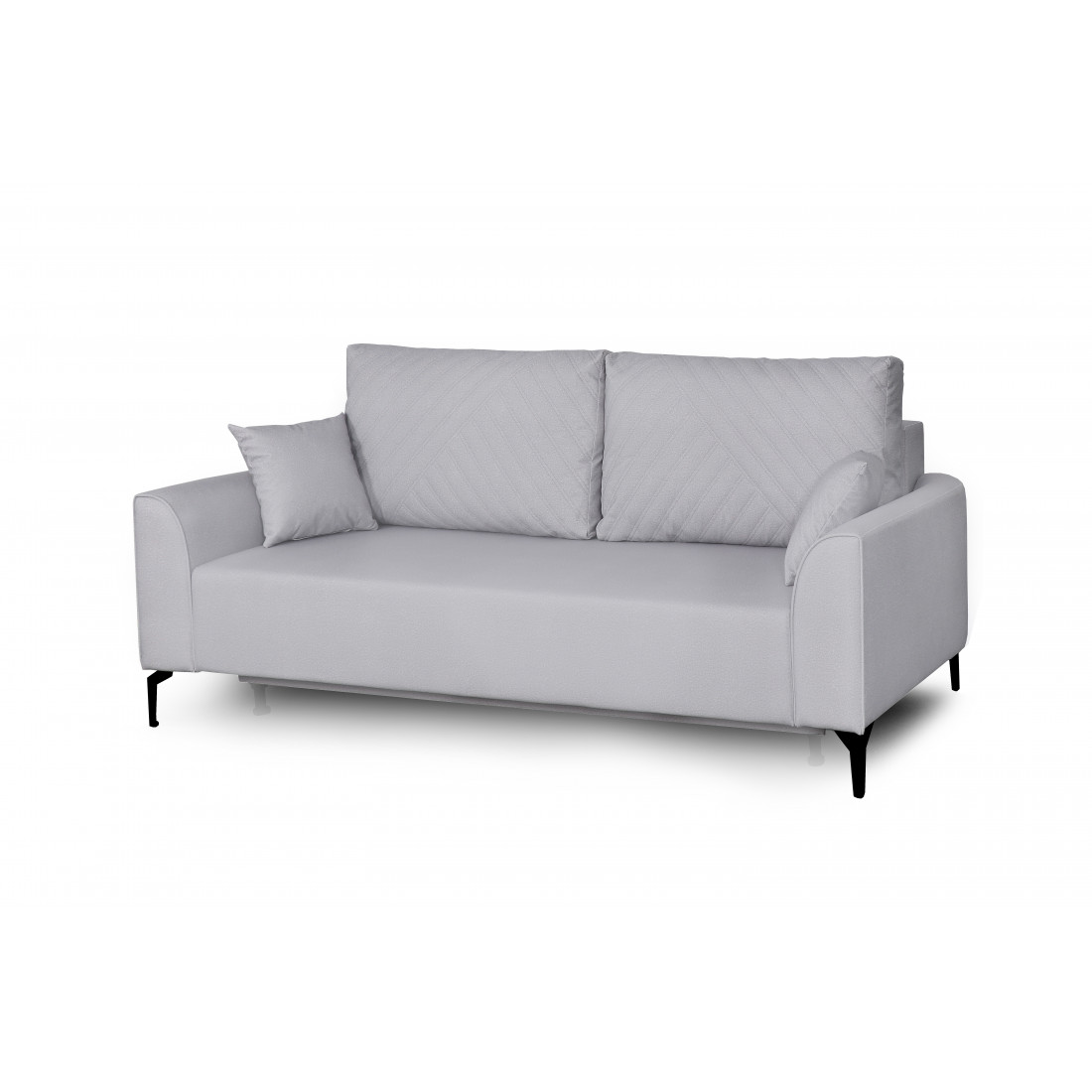 Плавные линии подлокотников позволяют удобно расположиться во время отдыха. Диван стоит на высоких металлических опорах, что позволяет использовать робот-пылесос в процессе уборки. Удобный и долговечный механизм трансформации "Тик-так" обеспечивает легкое раскладывание дивана.
