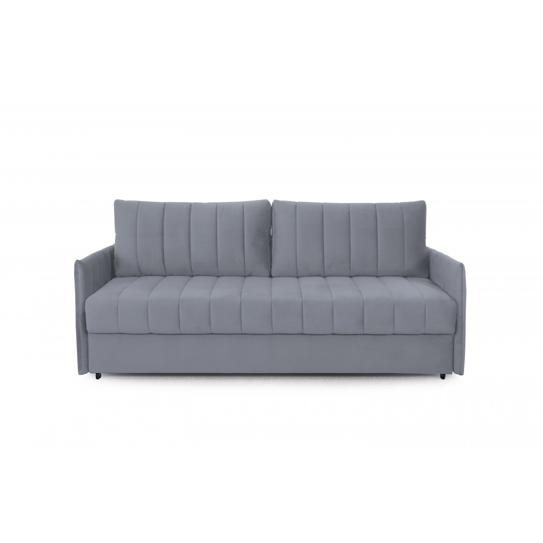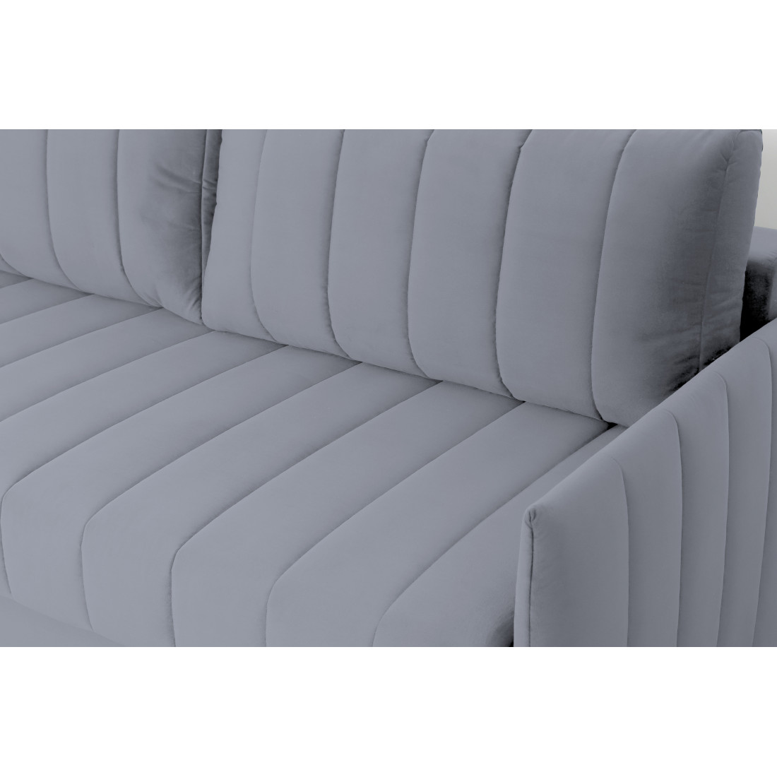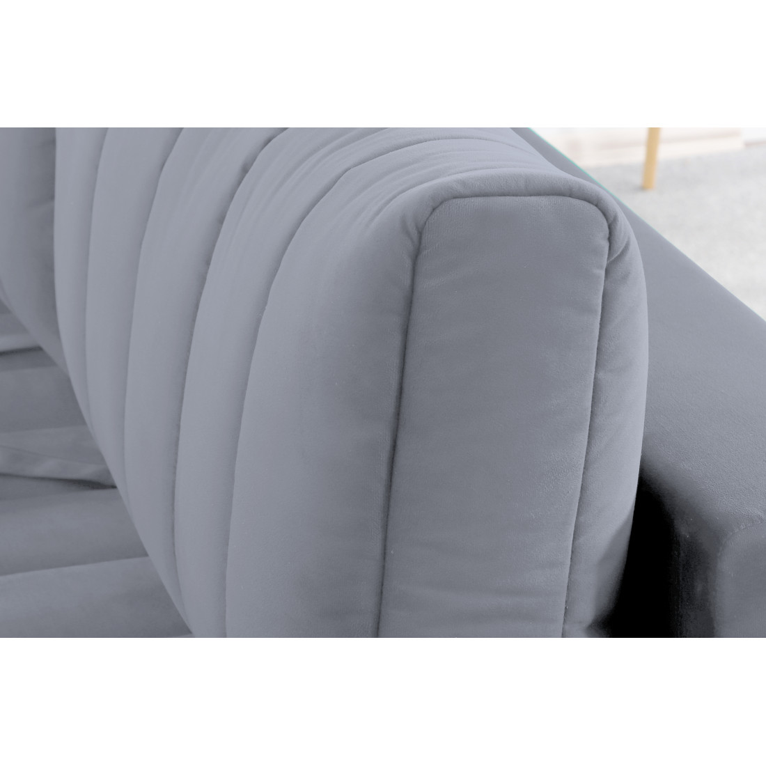 Подушки, сиденье и подлокотники дивана оформлены модной вертикальной стёжкой в современном стиле.
