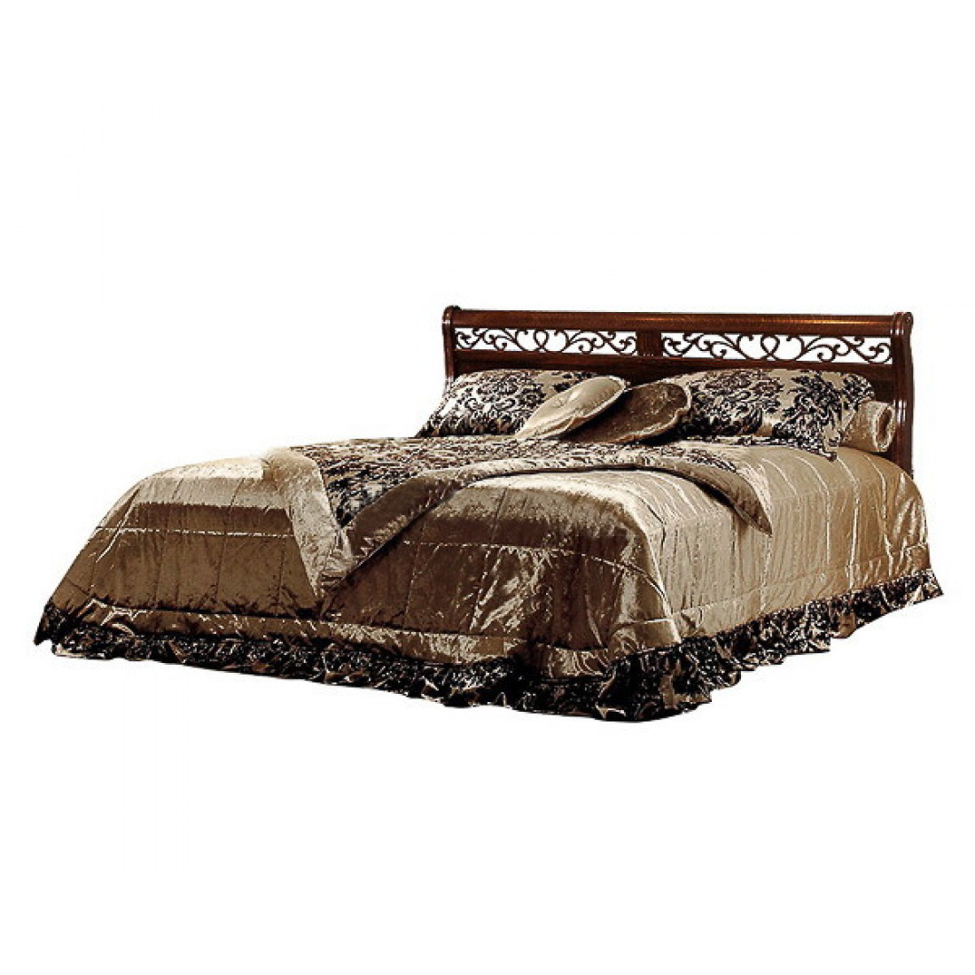 Классическая двуспальная кровать с высоким резным изголовьем и без изножья из коллекции мебели для спальни "Оскар". Дизайн модели отличается изогнутой формой спинки и изящной ажурной резьбой с растительным мотивом. Спальное место 1400х2000 . Выполнена из массива и шпона дуба, окрашена в оттенок "Орех".