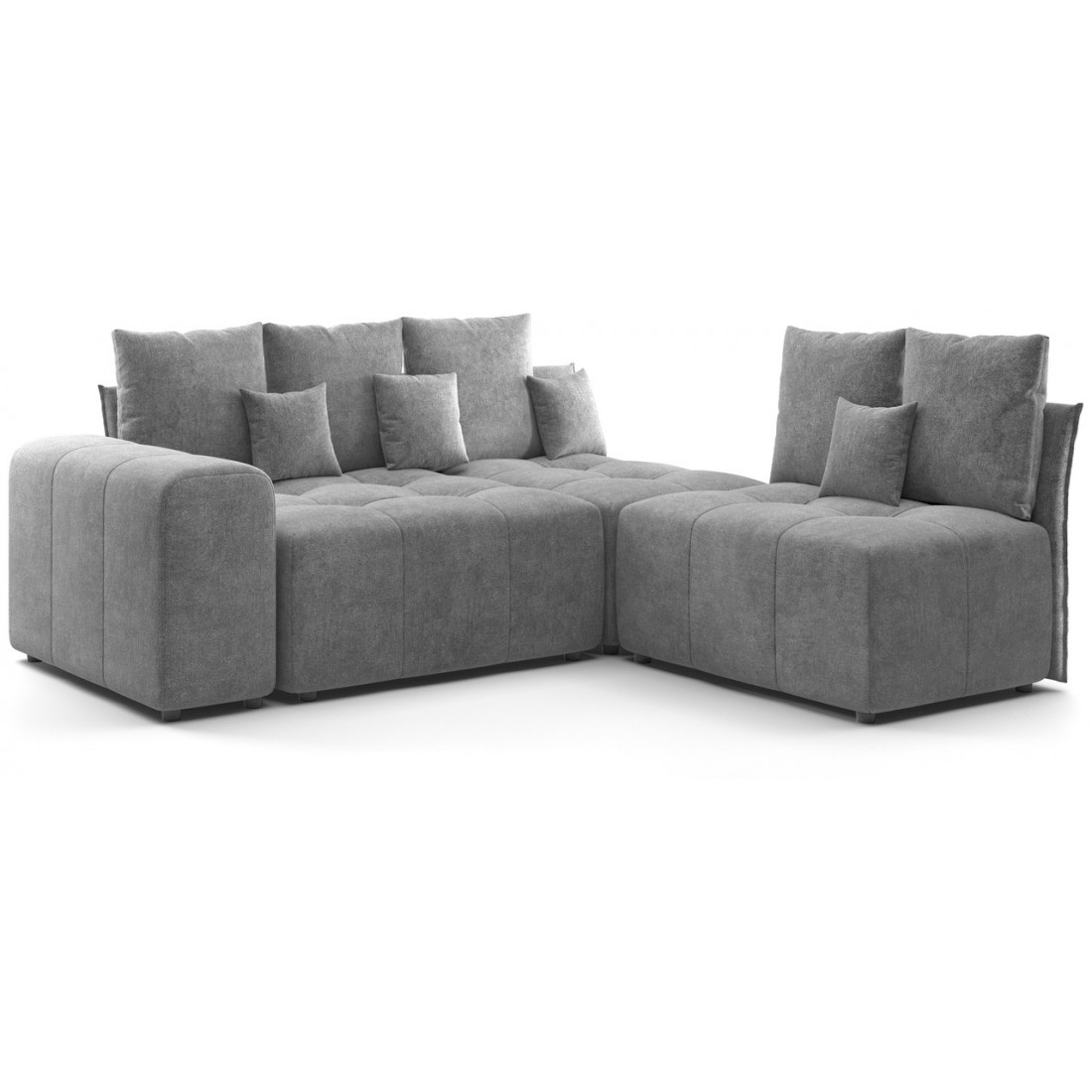 Модульный диван «Торонто» — это отличный вариант для тех, кому сложно подобрать монолитную конструкцию из-за сложной конфигурации помещения, а также тех, кто любит экспериментировать и часто делает перестановку. С его помощью можно легко изменить интерьер, превратив часть конструкции в пуф, кресло или софу.