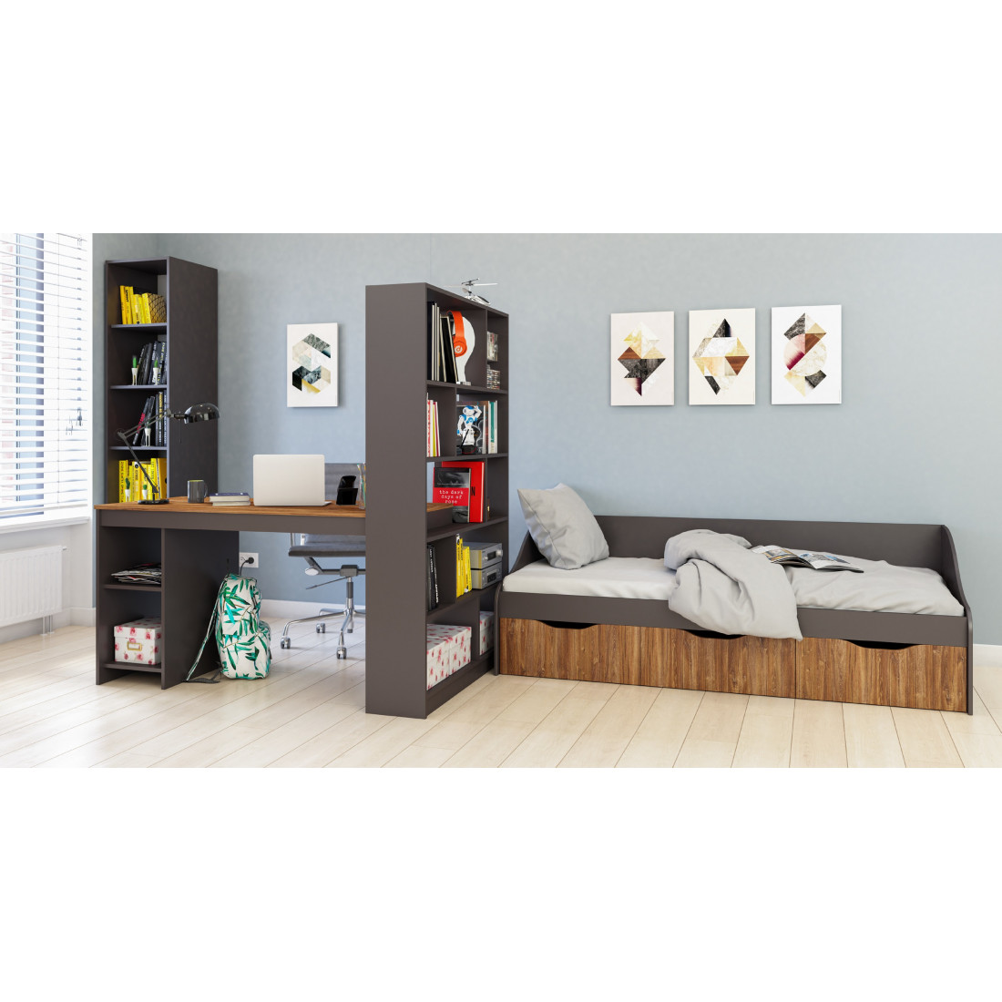 Коллекция Мальма для молодежной комнаты создана, исходя из последних веяний минимализма, которые так ценят люди, идущие в ногу со временем.