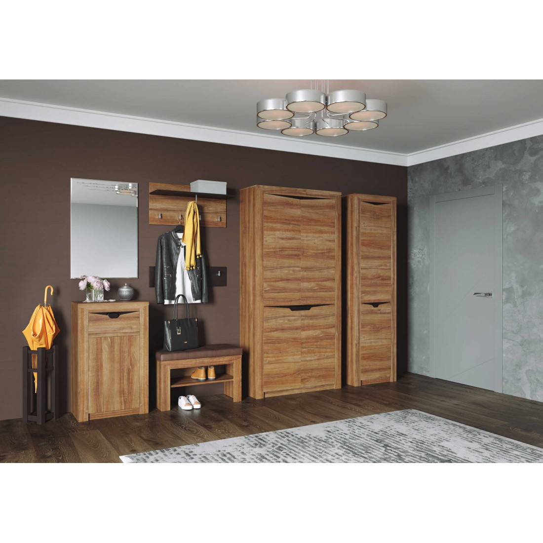 Прихожая Соренто в цвете дуб стирлинг порадует ценителей лаконичных форм своими простыми, современными линиями и приятной светлой деревянной текстурой. Контрастные вставки четко определяют места открытия.