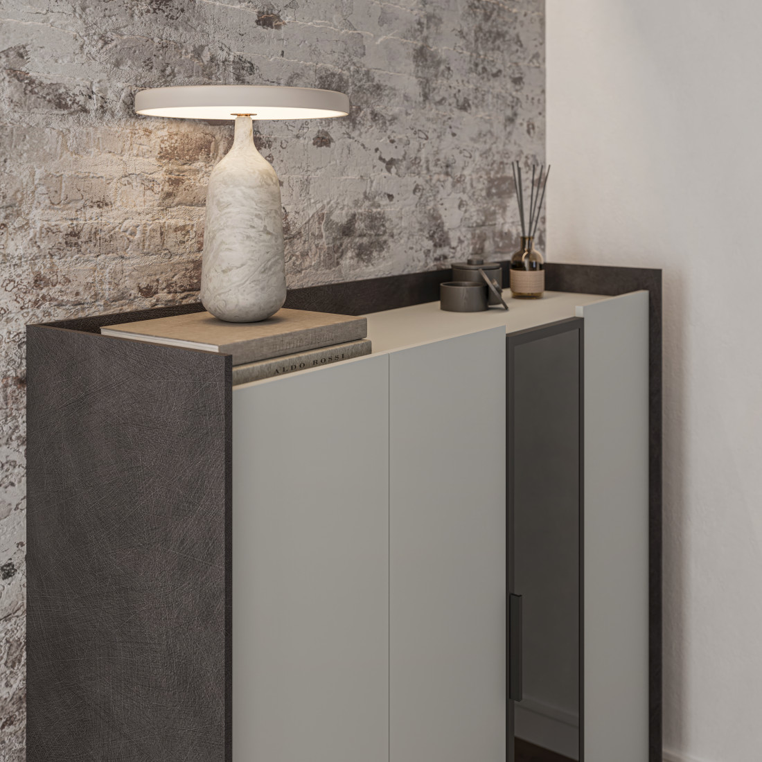 Материал корпуса: ЛДСП 12 мм (BySpan), цвет Белый, Лунный камень, Металл Бруклин
