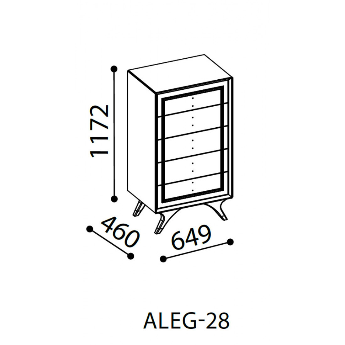 Узкий бельевой комод ALEG-28 серии Алегро от Беллона высотой 1172мм с пятью вместительными ящиками дополнит интерьер даже самой малогабаритной спальни и никогда не останется незамеченным: сочетание темной столешницы и фасадов с декоративными вставкамики.Комод можно купить отдельно, но эффектней в составе общей композиции.