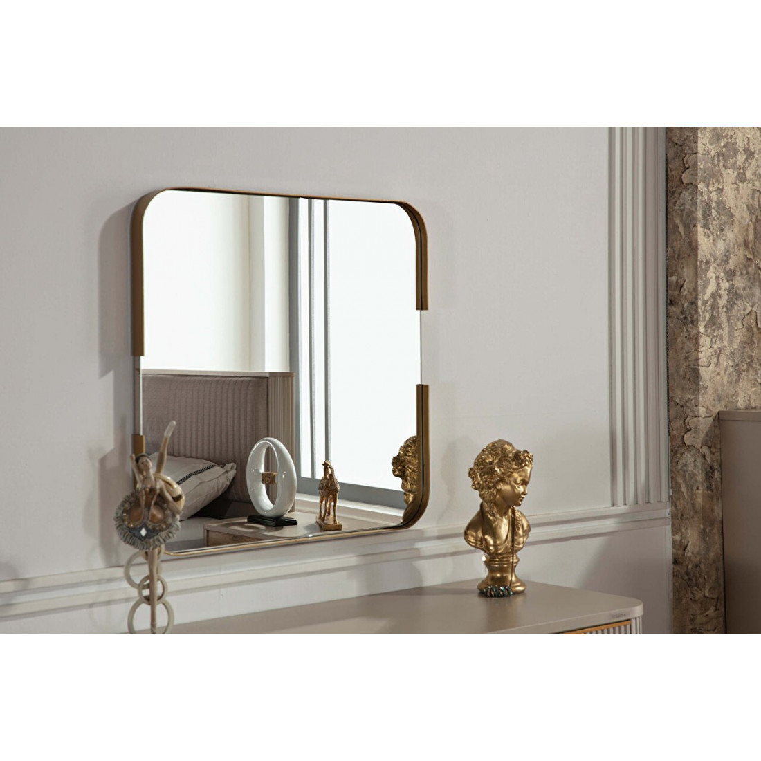 Небольшое квадратное зеркало SANV-24 из коллекции Санвито SANVITO турецкого производителя Bellona прекрасно подойдет к любому комоду, туалетному столику, тумбе в гостиную, спальню, прихожую.Зеркало обрамлено в оригинальную золотистую рамку. Крепится к стене.