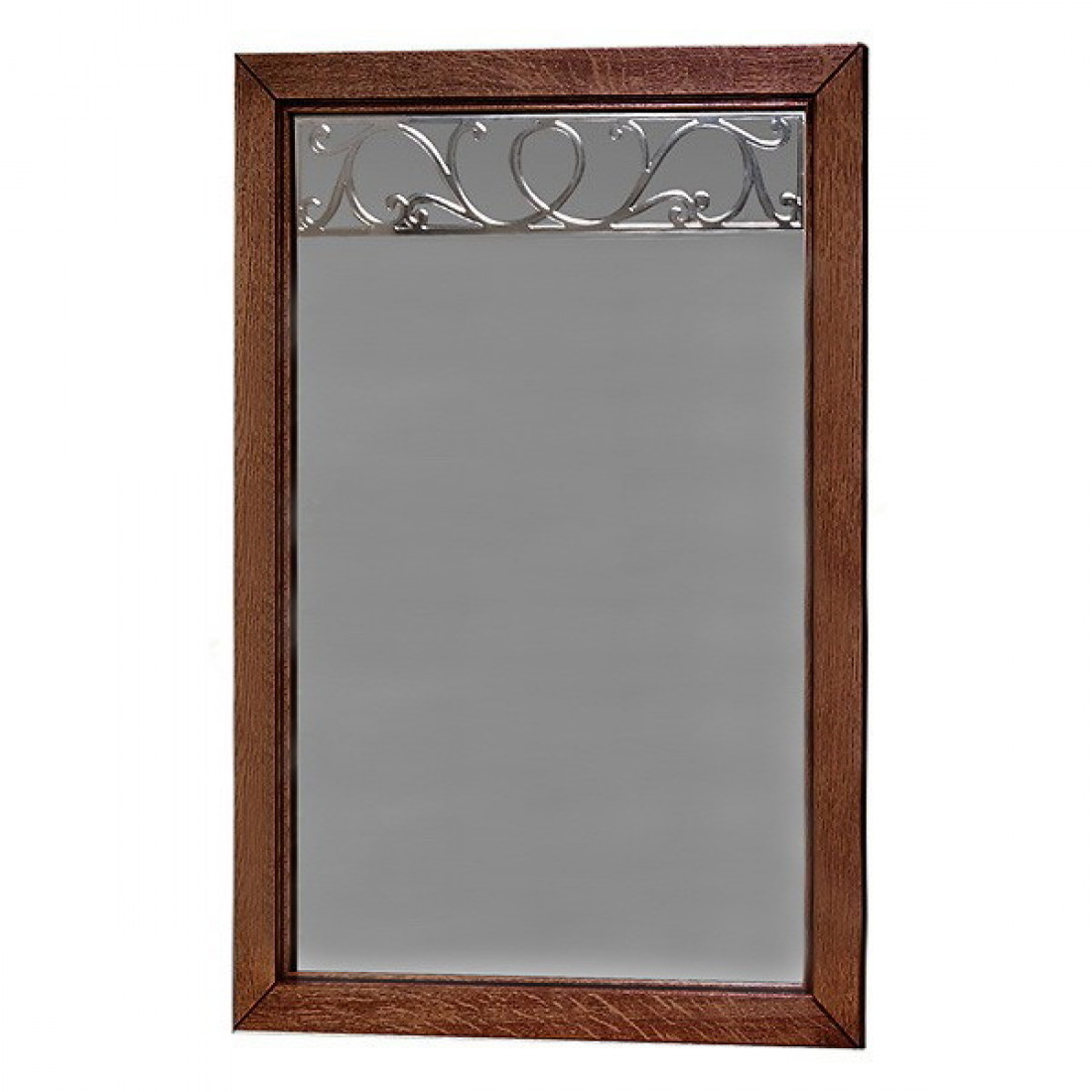 Классическое прямоугольное настенное зеркало для спальни из коллекции "Оскар" в простой раме из массива дуба. Декорировано растительным узором, окрашено в оттенок "Орех".